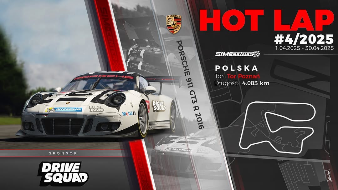 W kwietniu SIM-CENTER organizuje miesięczne wyzwanie na symulatorze! Twoim zadaniem jest ustanowienie najszybszego czasu okrążenia na wirtualnym Torze Poznań w Porsche 911 GT3 R 2016.