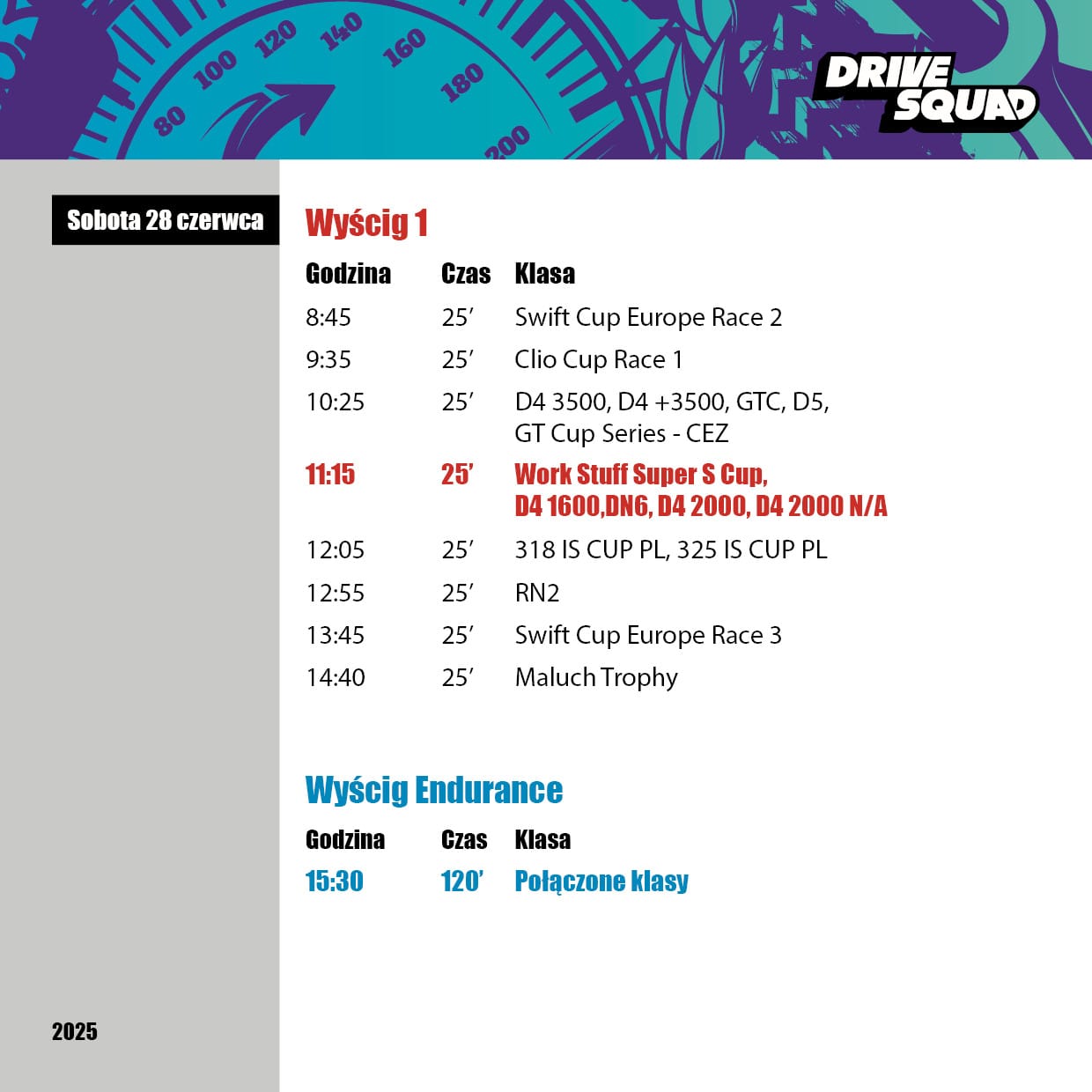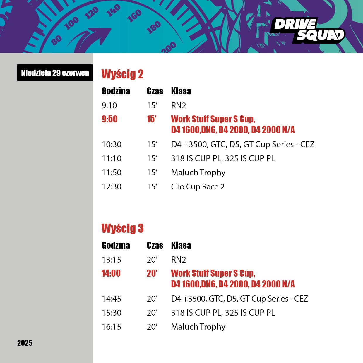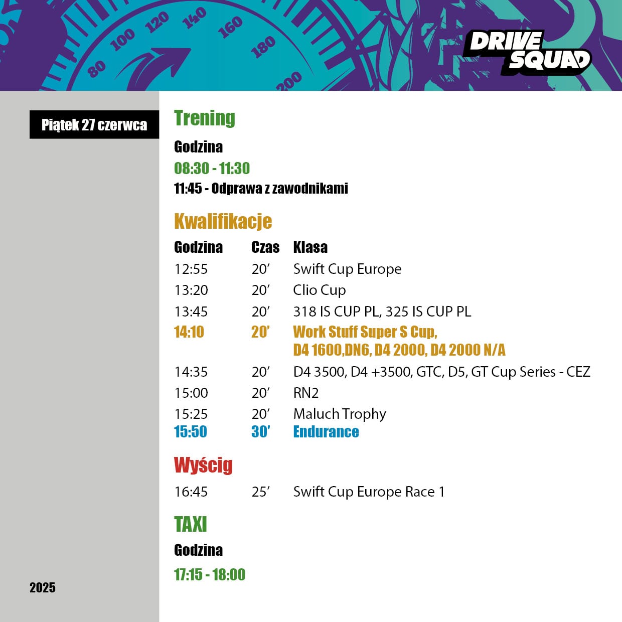 Na liście zgłoszeń zobaczymy kierowców m.in. z: Austrii, Niemiec, Czech, Holandii, Szwecji, Chorwacji, Węgier, Litwy i Polski. Emocji nie zabraknie w seriach Renault Clio Cup, Suzuki Swift Cup, BMW, a także w naszym pucharze Work Stuff Super S Cup.